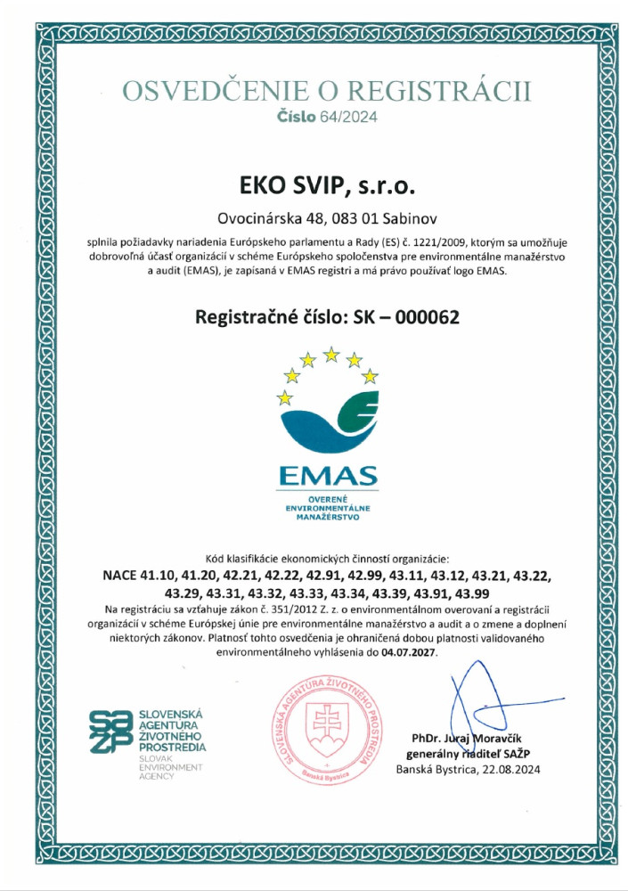 Sme držiteľom Certifikátu EMAS.